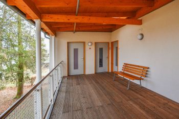 Das Bettenhaus ist von der Villa nur ungefähr 30 Meter entfernt. Die Zimmer sind mit Fernseher und Badezimmer mit Dusche ausgestattet. Das Gebäude umfasst ein Erdgeschoss und ein Obergeschoss. Die Zimmer im Erdgeschoss sind barrierearm. Es gibt keine Stufen, und die Duschen sind bodengleich (ohne Duschtasse). Die Handtücher sind im Preis inbegriffen. Die Gäste können unser WLAN kostenlos nutzen.